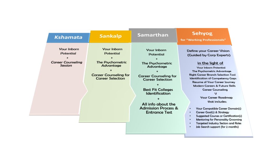 * Sankalp and Samarthan Programs include a Career Counseling Session of 1 hour while 40 mints session in Kshamata